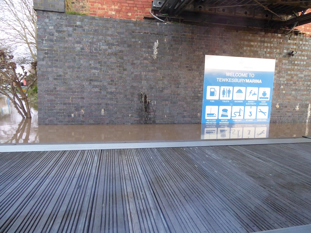 We are now used to coping with flooding! The Avon has been in flood almost continuosly since mid September. We are fine in the Marina, attached to the floating pontoon, and maintained access to car, and getting used to when the level floods the adjacent main road. Frequently there is only one road (A38) open into Tewkesbury, and that within a few inches of being overwhelmed. We had a long diversion to get to dancing. However the High Street and all its mainly independent shops are above water and accessible with boots on. Many others relying on the riverside poles were in trouble and the house almost opposite had their small cruiser near the kitchen, over the poles!